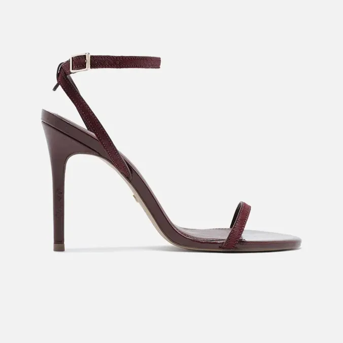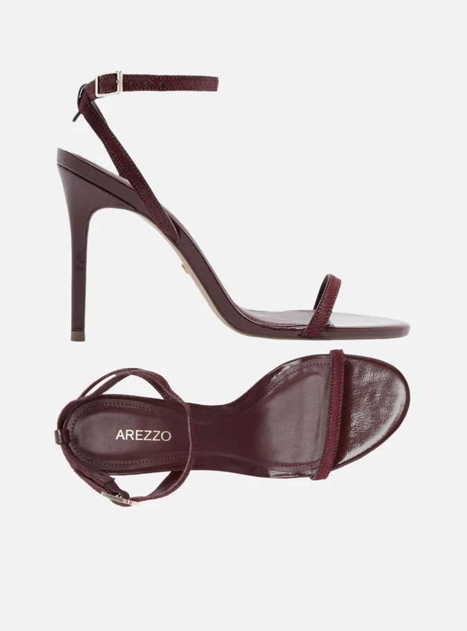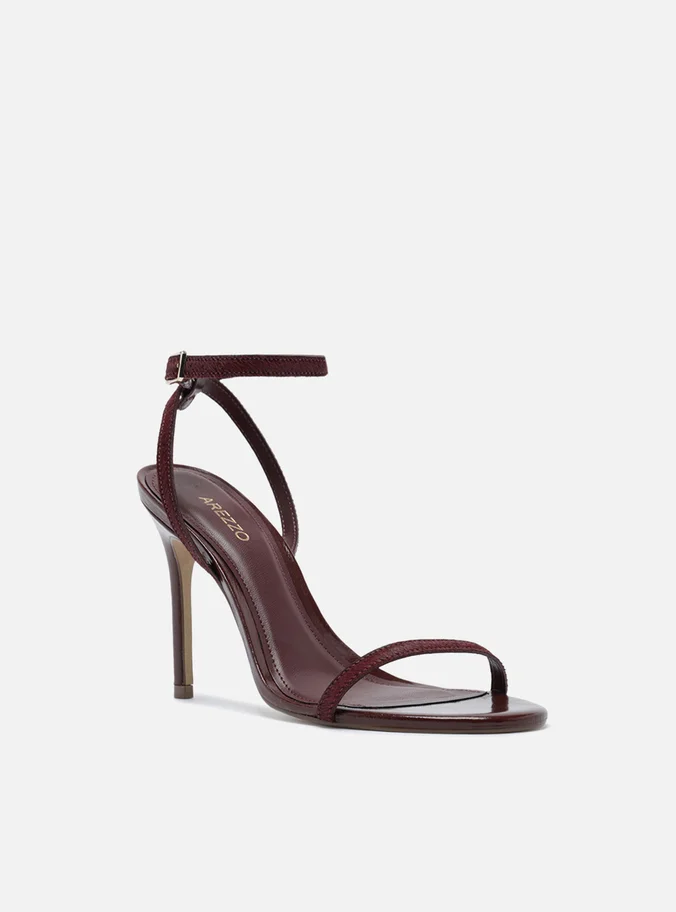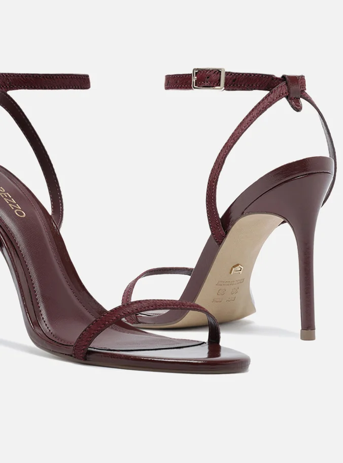Sandale me prekje luksoze nga Arezzo, të punuara me rripa të hollë prej lëkure me teksturë gezofi për një ndjesi unike. Ngjyra verë e kuqe e thellë dhe dizajni minimalist i japin finesë dhe elegancë çdo veshjeje mbrëmjeje. Ideale për raste kur stili takon rafinimin.